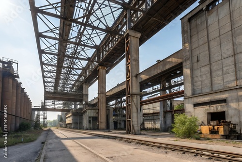 Obraz premium A poignant view of an abandoned industrial complex, sunlight illuminating the...