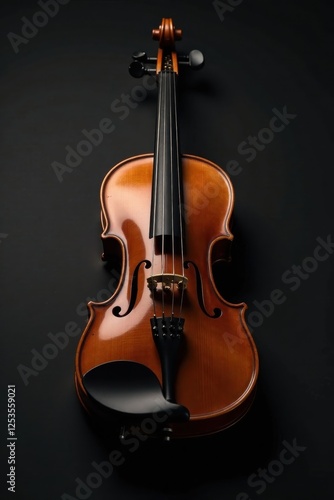 Fototapeta premium A Polished Violin Rests Against a Dark Background, Showcasing its Exquisite...