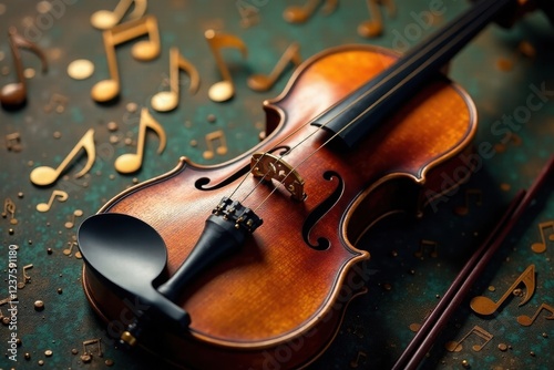 Fototapeta premium A polished violin rests among scattered musical notes, a symbol of musical...