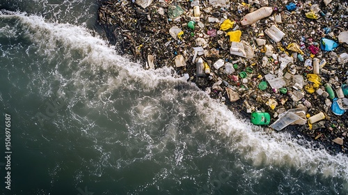 © Creative Insights, Obraz premium A polluted ocean area where factory waste flows into the water, damaging the environment.