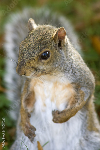 Fototapeta premium A portrait od a grey squirrel pointing to himself