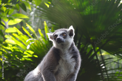 © mktuteja, Fototapeta premium A portrait of a Lemur against green background