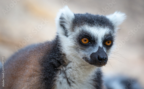 Fototapeta premium A portrait of a ring-tailed lemur in close-up