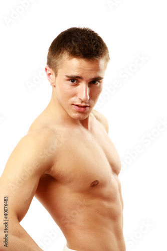 © lenets_tan, Fototapeta premium A portrait of a sportive man, isolated on white