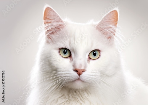 Obraz premium A portrait of a white cat on a white background. Created with Generative AI.