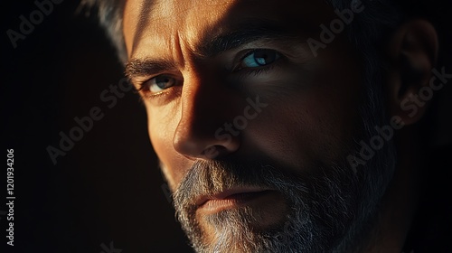 Fototapeta premium A portrait of an adult with light softly illuminating their face conveying a...