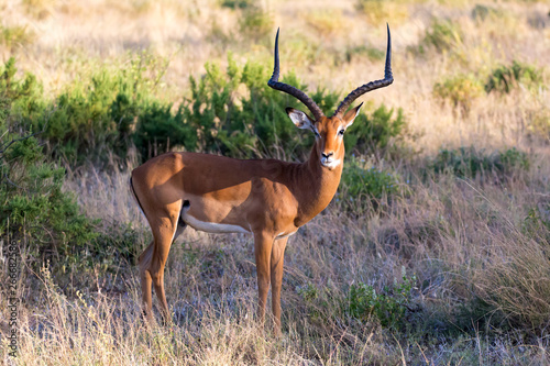 Naklejka premium A portrait of an Impala antelope in the savannah of Kenya