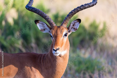 Naklejka premium A portrait of an Impala antelope in the savannah of Kenya