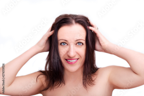 Fototapeta premium A portrait of beautiful face with beautiful eyes - isolated on white.
