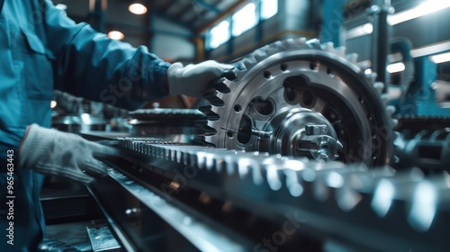 © Phoophinyo, Fototapeta premium A Portrait of Engineer inspects engine gear wheel, industrial background.