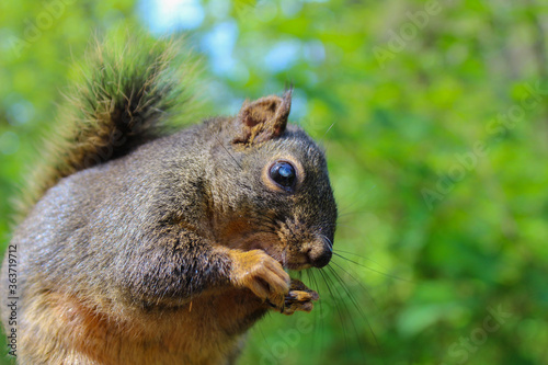 © Ksedonica, Obraz premium A portret of curious red North American squirrel peeks into