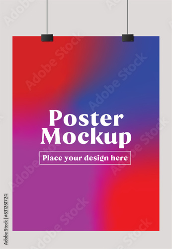 © deepak, Fototapeta premium A4 Poster mockup vector file gradient background hanging poster mockup