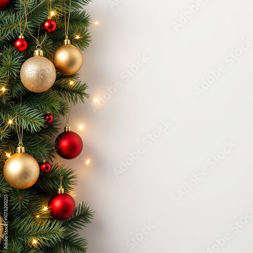 © Zahid, Fototapeta premium A poster or banner for christmas background with christmas tree branches and balls