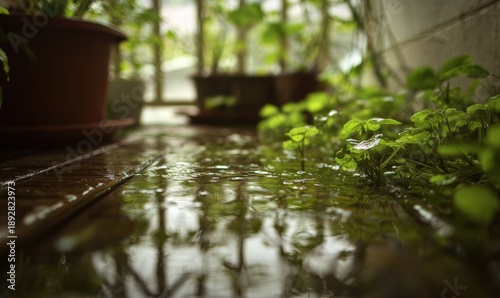 © TheoTheWizard, Naklejka premium A potted plant is sitting on a wooden floor
