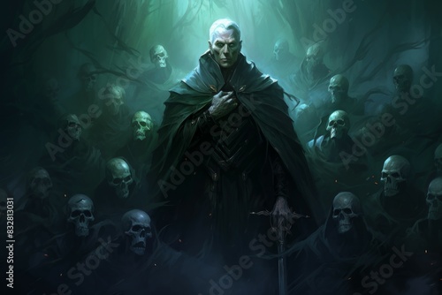 Fototapeta premium A powerful and fearsome necromancer, commanding legions of undead minions. - Generative AI