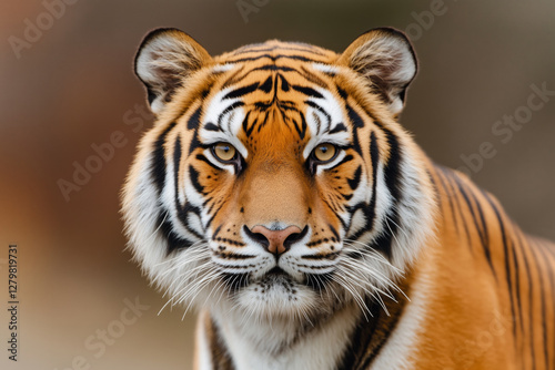 Fototapeta premium A powerful bengal tiger with striking orange and black stripes, staring directly at the camera