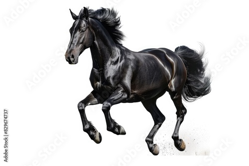 Fototapeta premium A powerful black horse in motion. Suitable for equestrian and animal-themed designs