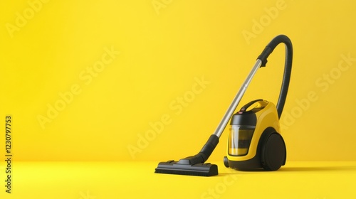 © Sawat, Fototapeta premium A powerful carpet vacuum with a long hose on a bright lime green background.