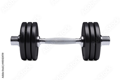 © Scenic Vault , Naklejka premium A powerful chrome barbell with stacked black weights, ready for a serious workout, against a bright white background.