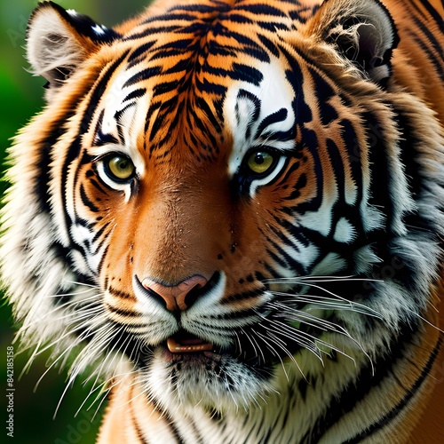 Fototapeta premium A powerful close-up of a tiger, showcasing its piercing eyes and iconic...