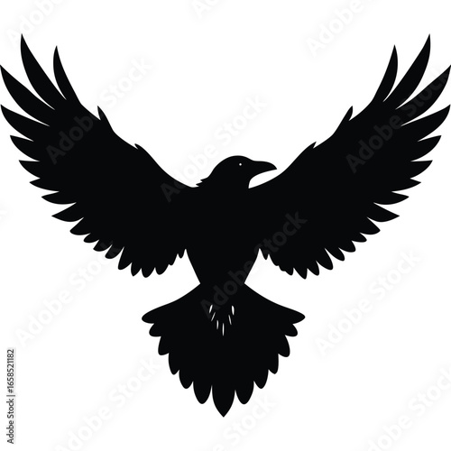 Obraz premium A powerful eagle in flight, with its black silhouette and outstretched wings, makes for a striking vector illustration against a white background