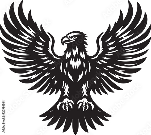 © Arnab, Obraz premium A powerful eagle silhouette in flight, wings spread wide with sharp, defined lines, symbolizing freedom and strength.
