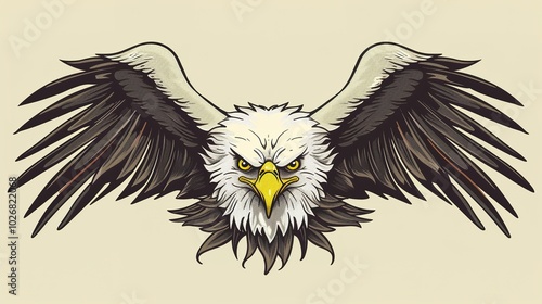 Fototapeta premium A powerful eagle tattoo vector design, featuring bold lines and intricate details. The eagle is depicted in mid-flight with dynamic wings and sharp features, symbolizing freedom, strength, and courage