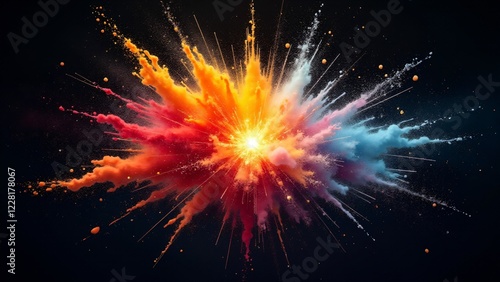 Fototapeta premium A powerful explosion of vibrant colors radiates outward, mimicking an energy...