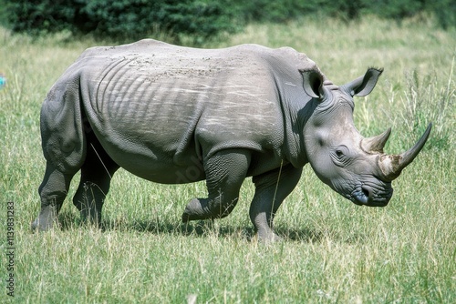 © Nico, Obraz premium A powerful image of a rhinoceros with its horn prominently displayed