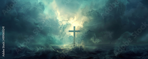 Fototapeta premium A powerful image of the Crucifixion, with an abstract cross against a stormy,...