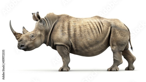 Obraz premium A powerful rhino standing on a white surface, suitable for various projects