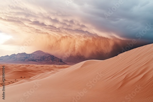© Sladjana, Naklejka premium A powerful sandstorm sweeping across a desert landscape, obscuring visibility