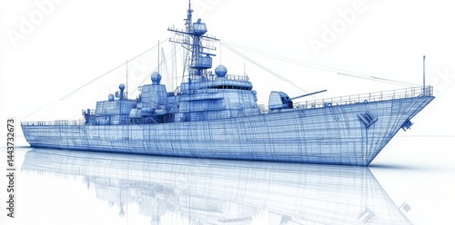 Fototapeta premium A precise and elaborate illustration depicts a battleship floating on...