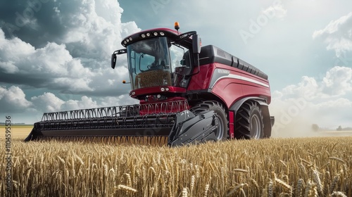 © Aisha, Obraz premium A precision harvester working in a field of wheat under cloudy skies