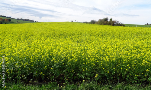 Fototapeta premium A Pretty Mustard Field at low mountain range, Germany