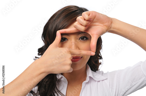 © Carlos Santa Maria, Fototapeta premium A pretty young asian woman with framing hands