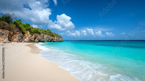 Fototapeta premium A pristine coastline with vibrant turquoise water meeting soft sands