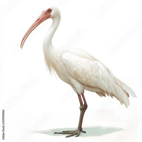 Obraz premium A pristine white bird stands elegantly with its long, curved beak, showcasing its slender form against a clean white background.