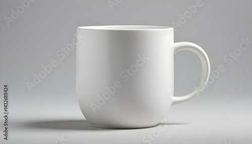 Fototapeta premium A pristine white ceramic mug is perfectly centered on a light gray...
