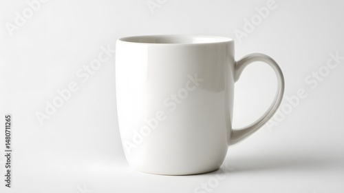 Fototapeta premium A pristine white ceramic mug sits against a clean, bright white backdrop in a studio setting.