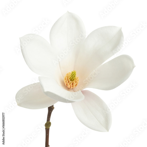 © nAot, Fototapeta premium A pristine white magnolia flower with a delicate yellow center against a transparent background.