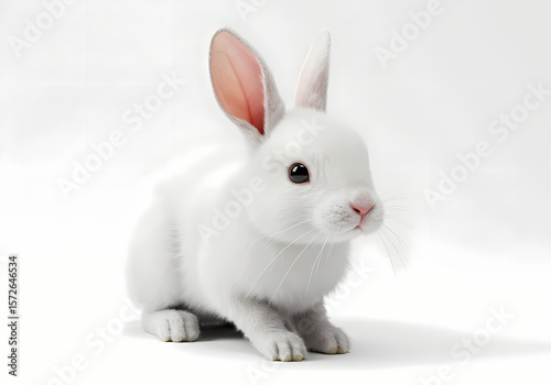 © Uhafsa, Obraz premium A Pristine White Rabbit Against a Pure White Background
