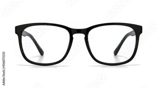 © MOSTFAOZIA, Fototapeta premium A product photo of black rectangular eyeglasses with clear lenses against a pure white background.