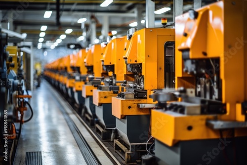 Fototapeta premium A production line of industrial machines in a manufacturing facility