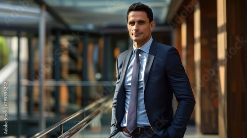 Naklejka premium A professional headshot of a man in a suit and tie, standing with hands in...