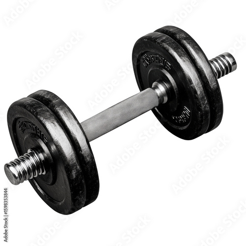 © Alif, Naklejka premium A professional studio shot of a classic black and chrome dumbbell on white background
