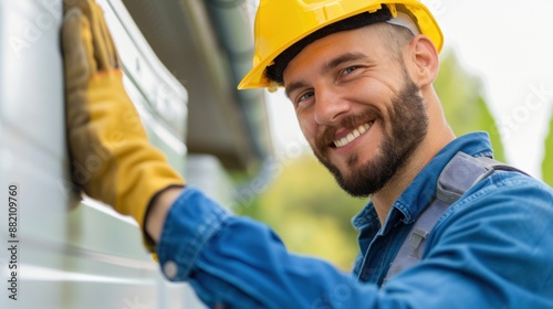 © sawitreelyaon, Obraz premium A professional technician in uniform is installing air conditioning system, installation maintenance and repair concept.