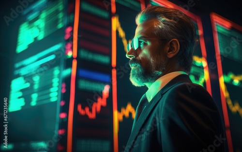 Fototapeta premium A professional trader with a confident posture standing in a futuristic...