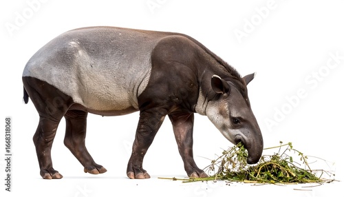 Naklejka premium A profile view of a pangolin, gracefully foraging for vegetation against a plain white background.