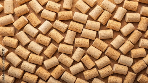 Obraz premium A profusion of wine corks arranged in a swirling pattern, showcasing their...
